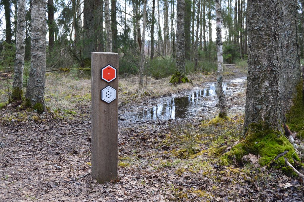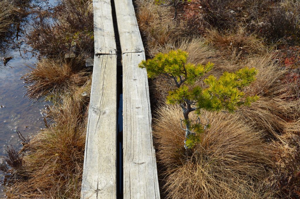 Vi som båda glömde vandringskängorna hemma kan andas ut, för trots myrmark går det alldeles utmärkt att vandra med gympaskor. Både skogsstigarna och spängerna är torra och fina.
