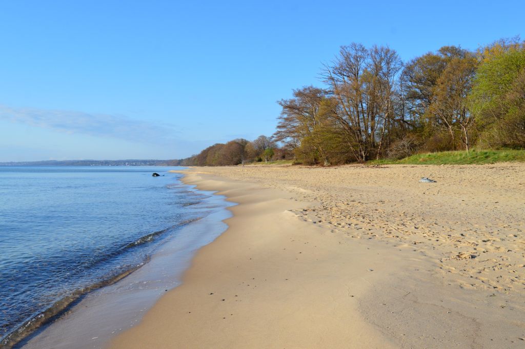 En vandring längs en bred stig och en spång kantad av vitsippor och ängar med backsippor och gullvivor leder oss ner till stranden.