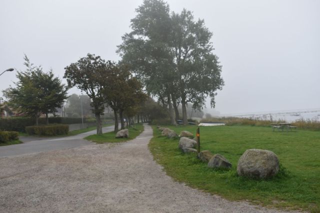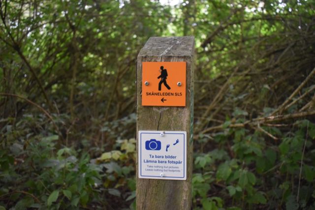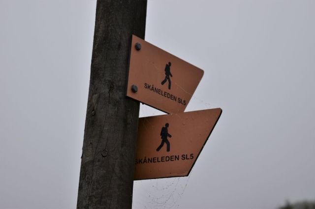 Bland Skåneledsskyltarna nere vid Löddeköpinge Kanotklubb ges ingen information alls om dagens etapp, bara om förra etappen, vilket är lite märkligt. Kanske skylten har ramlat av eller blivit förstörd på något sätt, vad vet vi? Men vi hittar åtminstone några orangea markeringar som pekar oss i rätt riktning ut ur Löddeköpinge.