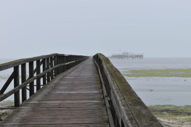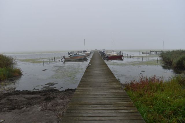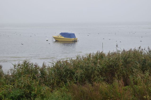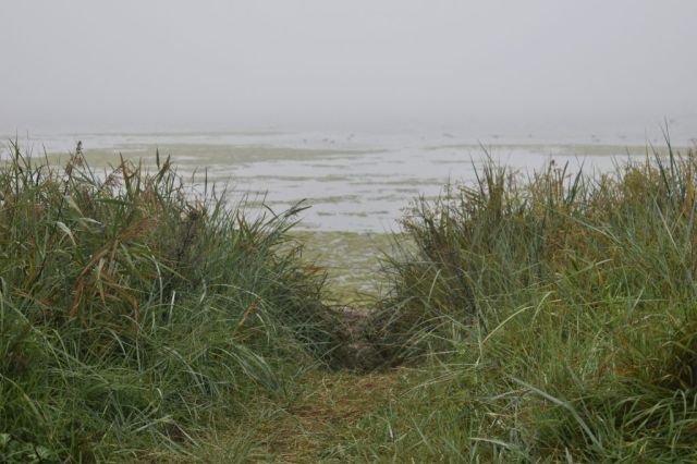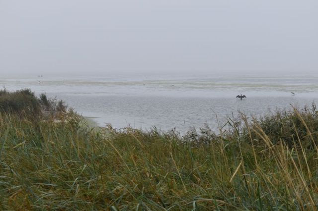 Vi är så nöjda där vi vandrar oss fram genom dimman. Ensammast i hela världen känns det som, förutom alla fåglar som flyter omkring i det alldeles vindstilla havet.