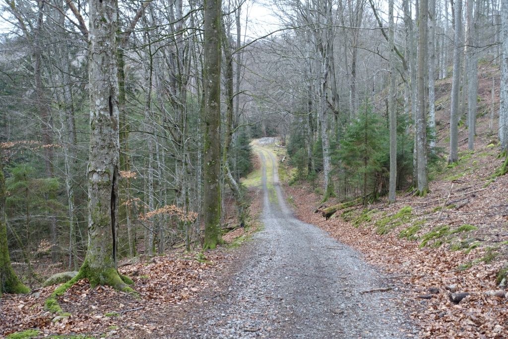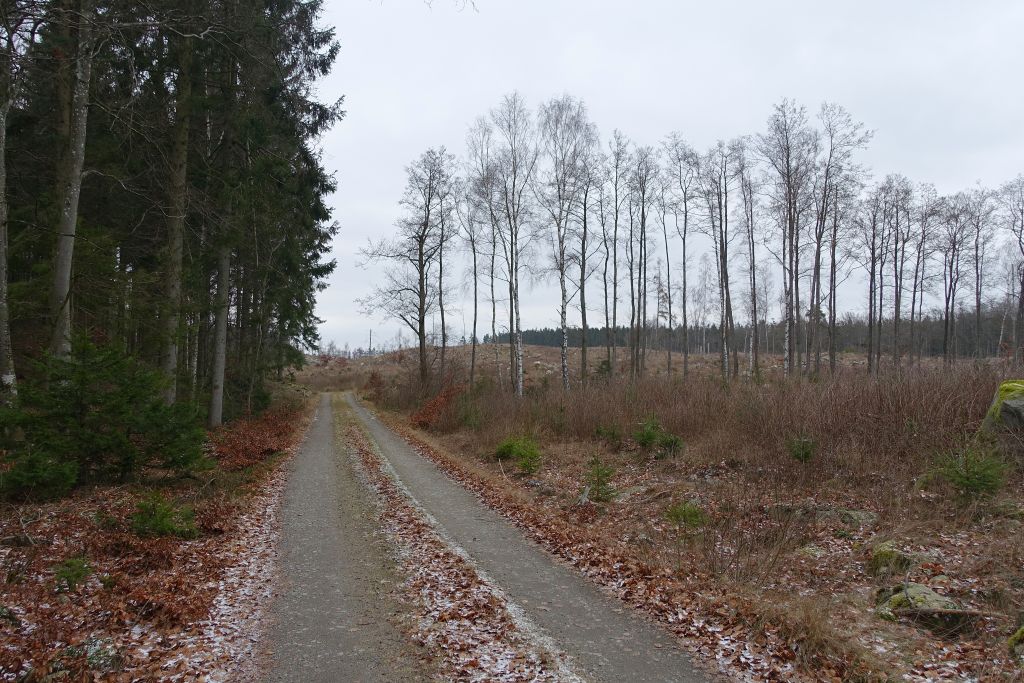 Leden fortsätter sen längs breda skogsstigar, förbi granskog och kalhyggen.