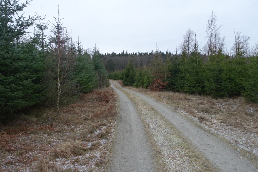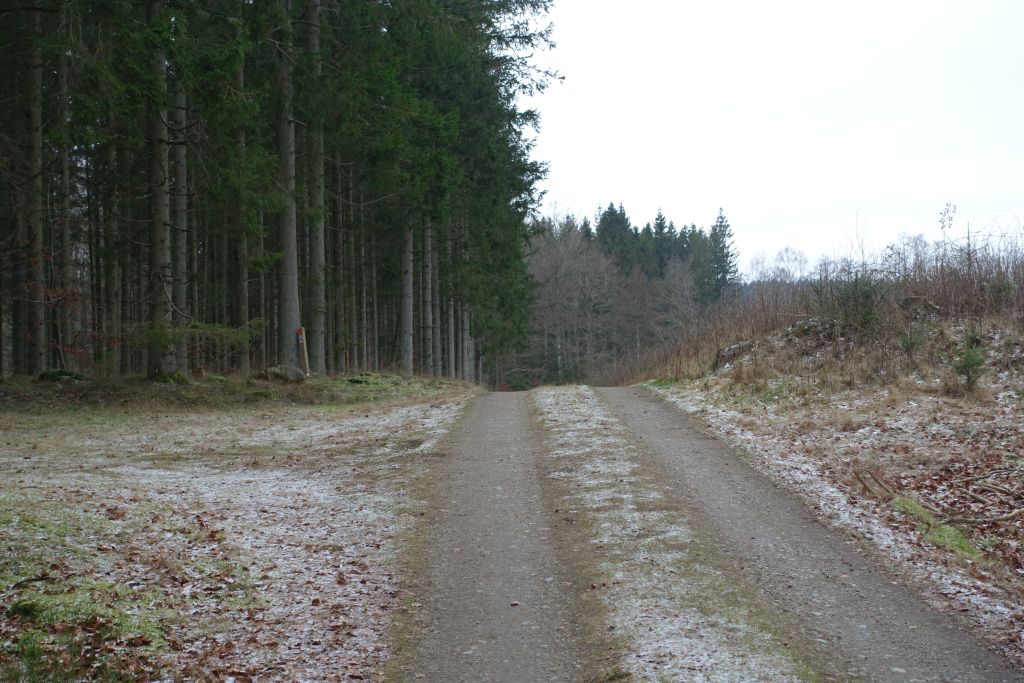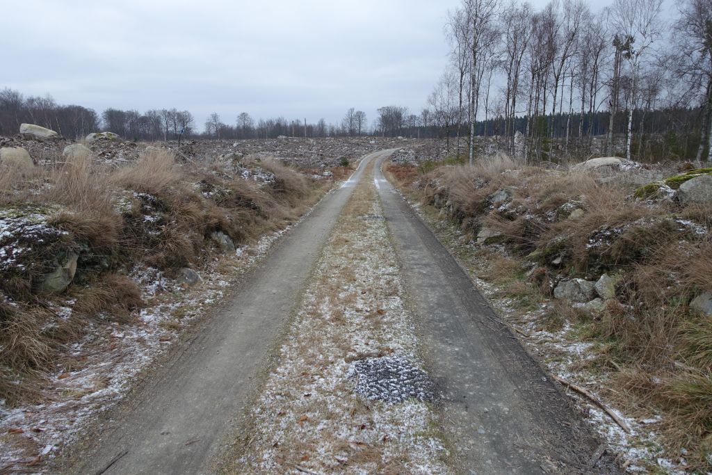 Leden fortsätter sen längs breda skogsstigar, förbi granskog och kalhyggen.