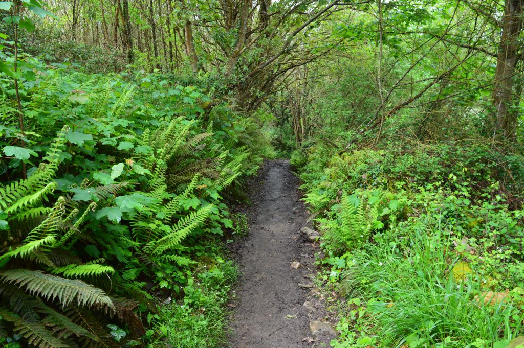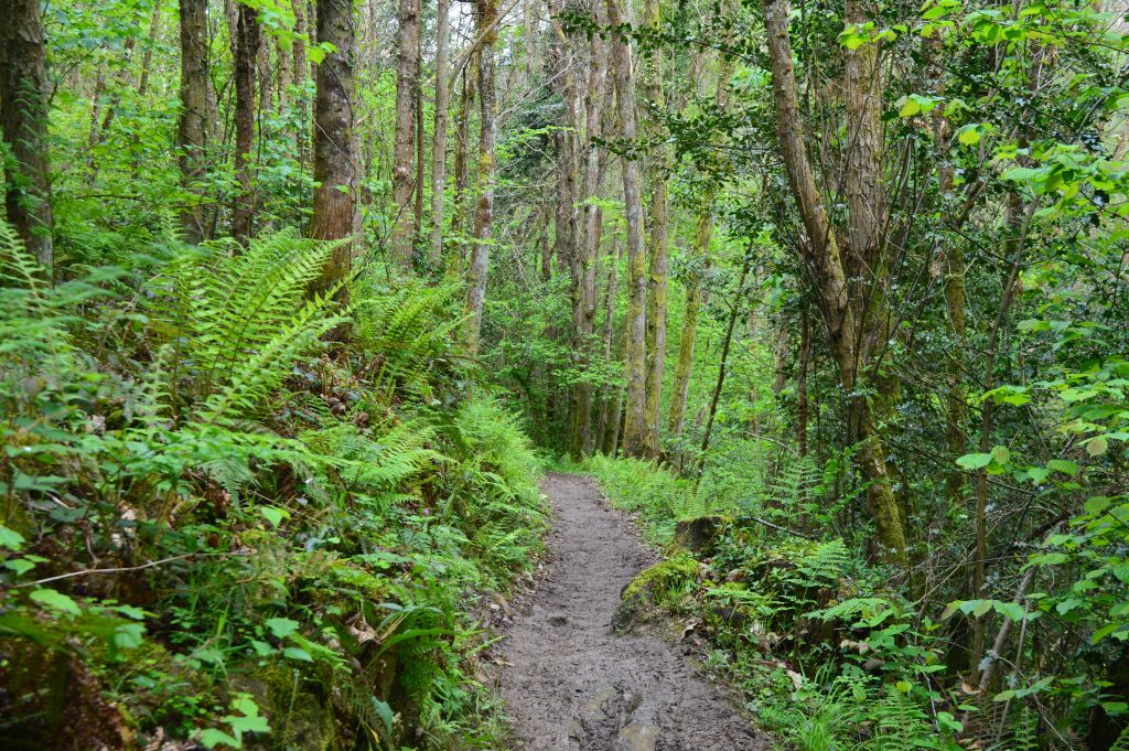 Inne i skogen är det blött och lerigt, men grönt och frodigt.