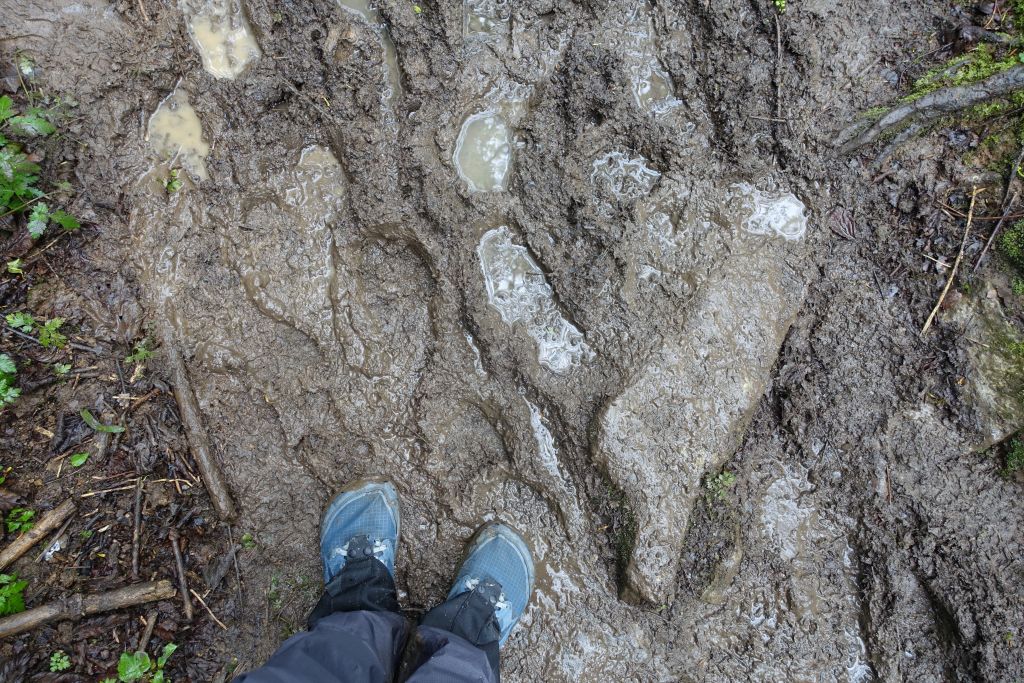 Här är det svårt att ta sig fram på grund av all lera. Jag är glad att jag har damasker som skyddar mot den värsta leran, men skorna är om möjligt ännu blötare än tidigare.