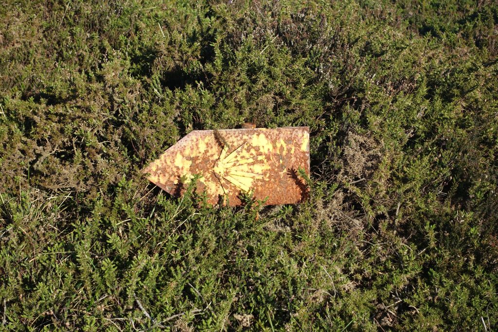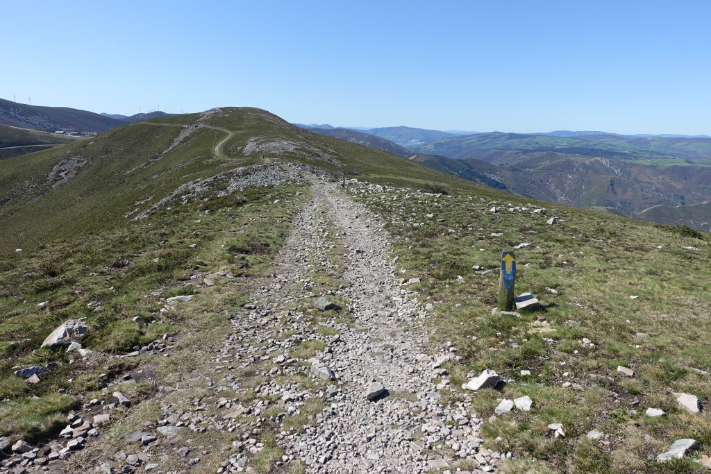 När vi lämnar ruinerna av det gamla pilgrimssjukhuset blir terrängen något flackare, men det bär fortfarande uppför, nu längs ett mer stenigt underlag.