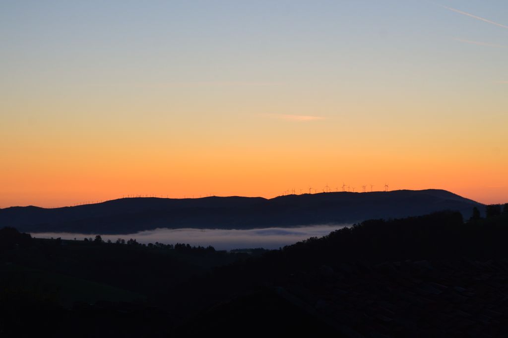 Det gör att en timme senare är de andra pilgrimerna ikapp oss. Morgonmagin är därmed bruten. Men vi är tacksamma för att vi ändå fick en hel timme ensamma i bergen. Nu är det en skara pratglada pilgrimer som delar leden med oss. Främst är det de spanska pilgrimerna som hellre verkar vilja prata än tyst njuta av vyerna. Kanske är de inte lika imponerade över landskapet som vi.