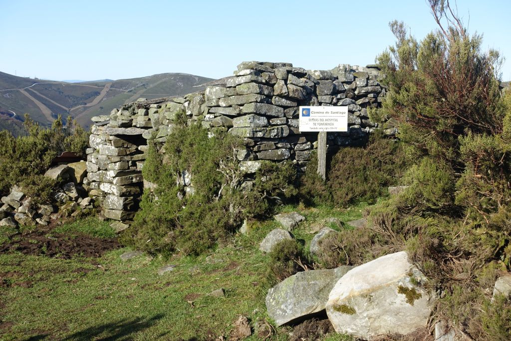 Vi uppfattar aldrig när genvägen från Colinas de Arriba går ihop med Ruta de Hospitales, men snart är vi framme vid Ruinas del Hospital de Paradiella, den första ruinen av de sjukhus som under 1400-talet erbjöd pilgrimer vård och skydd under den svåra vandringen över bergen.