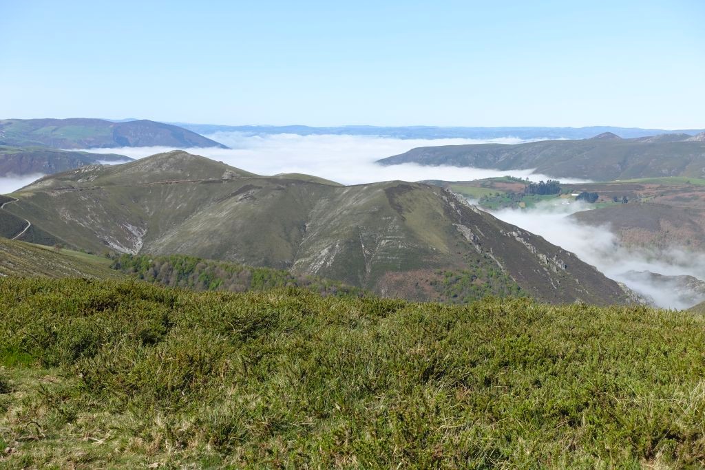 Vi fortsätter sen upp mot dagens högsta punkt, Alto de Palo (1146 m) där leden från Pola de Allande går ihop med Ruta de Hospitales.