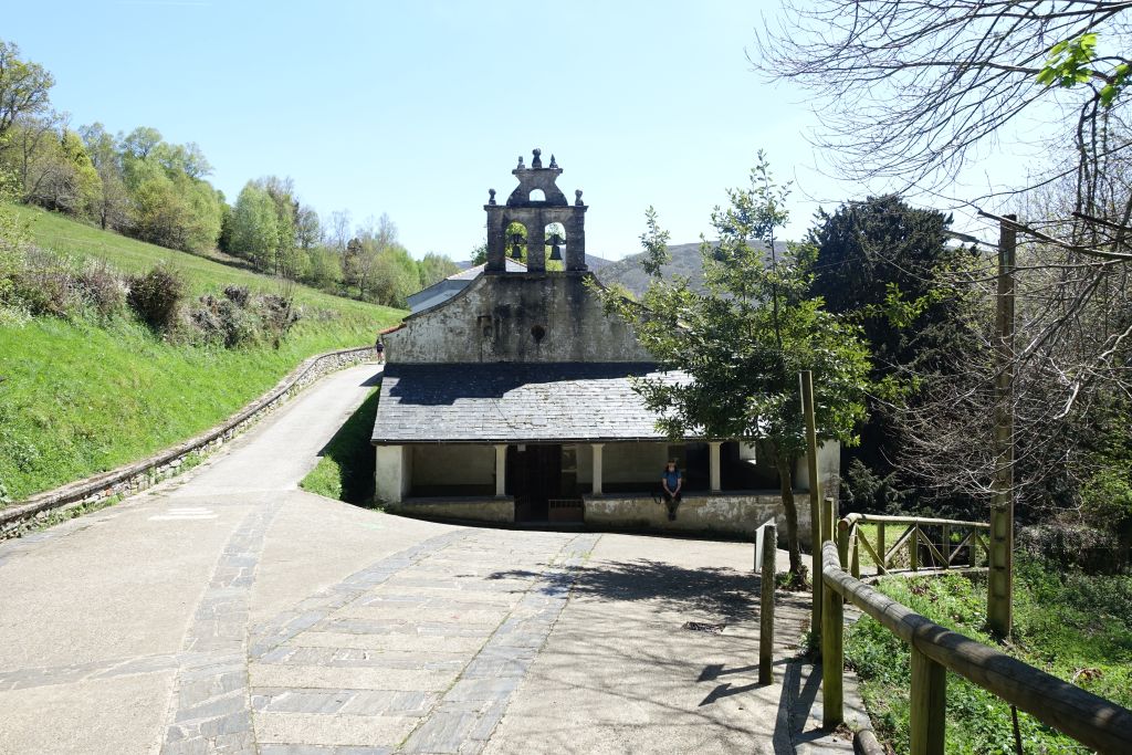 Här tar vi en äppelpaus vid Iglesia de Santa Maria de Lago. Kyrkan är stängd så någon stämpel pilgrimspasset blir det inte. Vi som måste ha minst två stämplar om dagen för att få vår compostela i Santiago får jaga vidare.