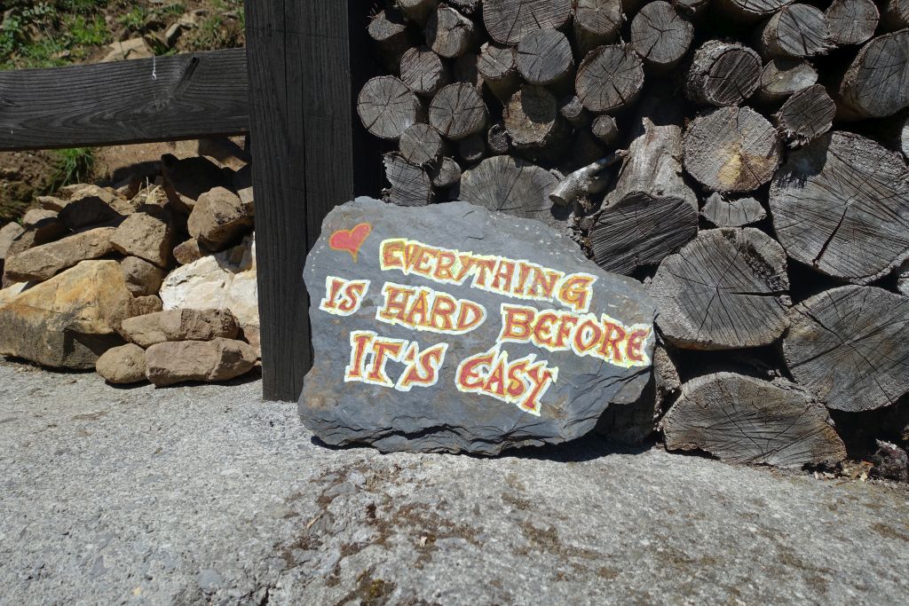 Nu nere på lägre höjder har solen börjat steka på ordentligt. Vandringen blir med ens riktigt tung, varm och jobbig.