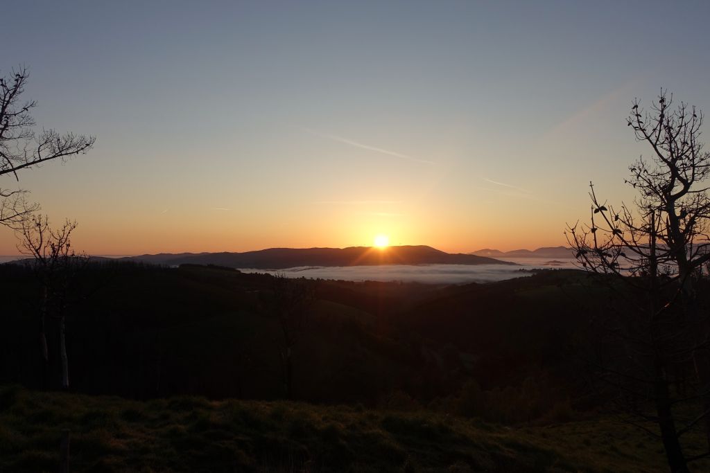 Soluppgången över bergen bjuder på en orangefärgad himmel och nedanför ligger molntäcket som bomull över dalen. Det är alldeles tyst och stilla. Bara våra flåsande andetag som hörs. För nu bär det brant uppför. Riktigt brant.