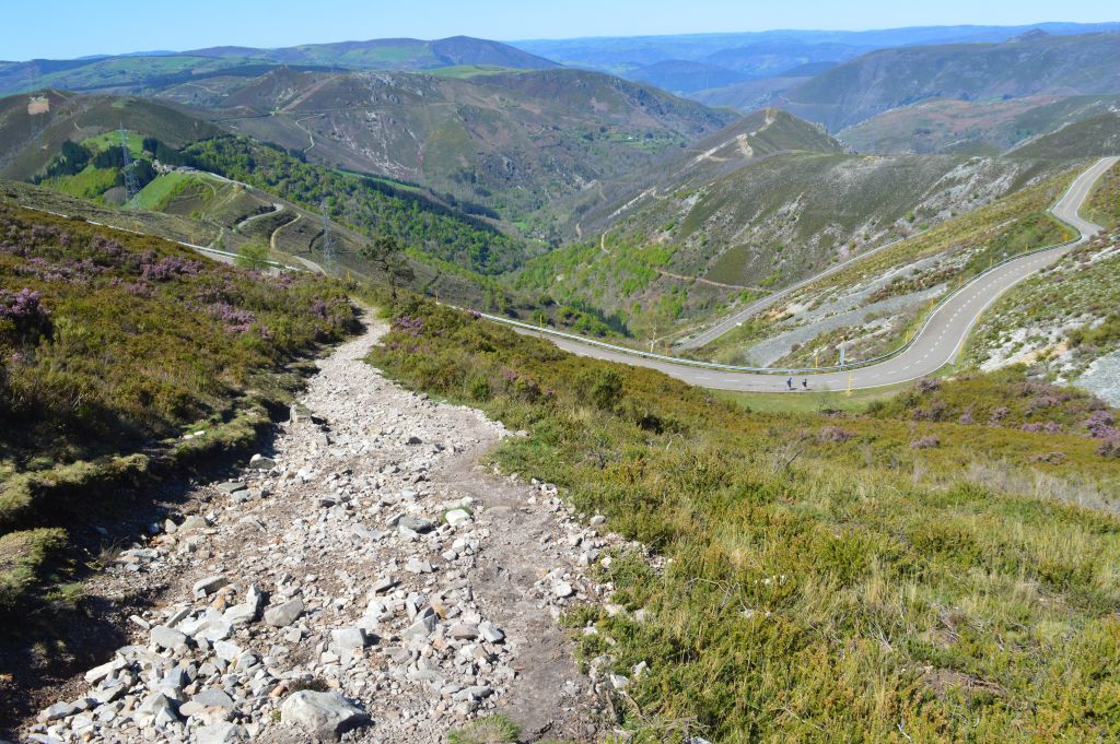 Härifrån leder en riktigt brant och stenig backe oss ner till den mer eller mindre övergivna byn Montefurado. En backe som är så svår att ta sig nerför att vissa pilgrimer med knäproblem väljer landsvägen istället.