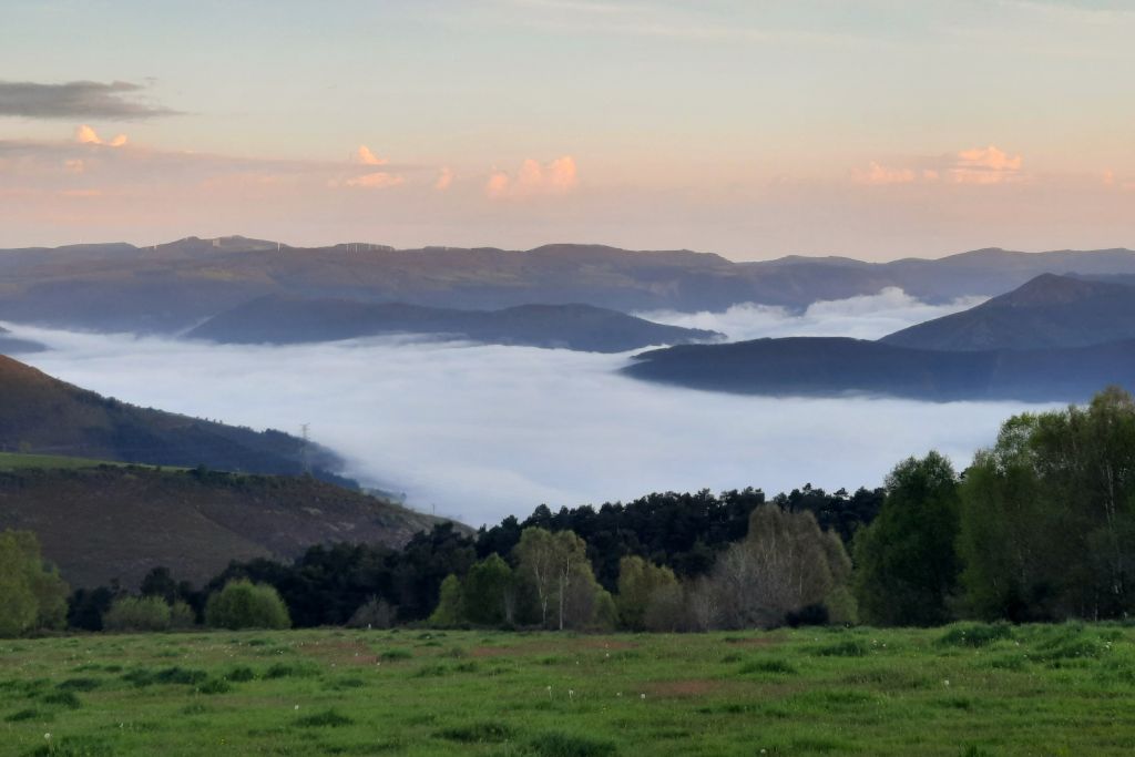 Det är tidig morgon när vi lämnar Berducedo. Klockan är inte mer än 7.15 och solen håller precis på att gå upp.