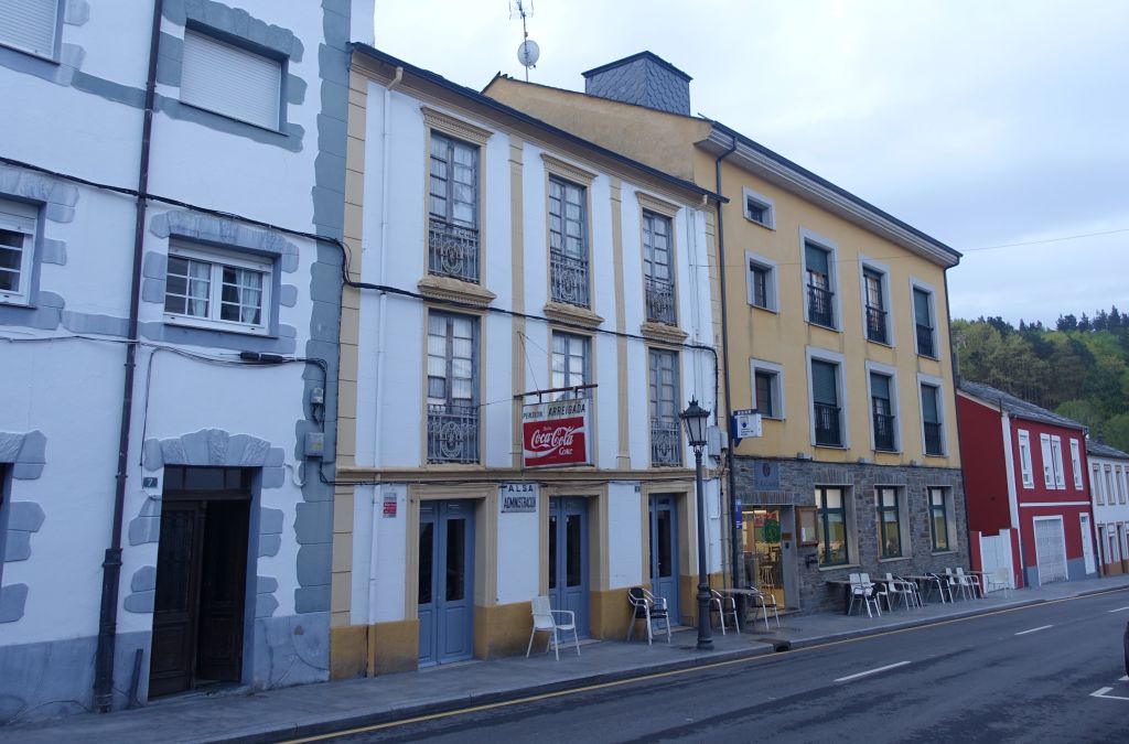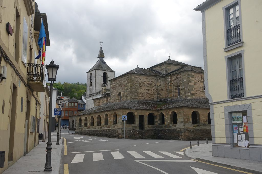 Vi tittar inom Iglesia de Salvador för att stämpla våra pilgrimspass och besöker apoteket för inhandling av solkräm och sporttejp att laga vandringssällskapets trasiga skor med. Det får helt enkelt duga tills vi kommer till en större stad där nya skor kan införskaffas.