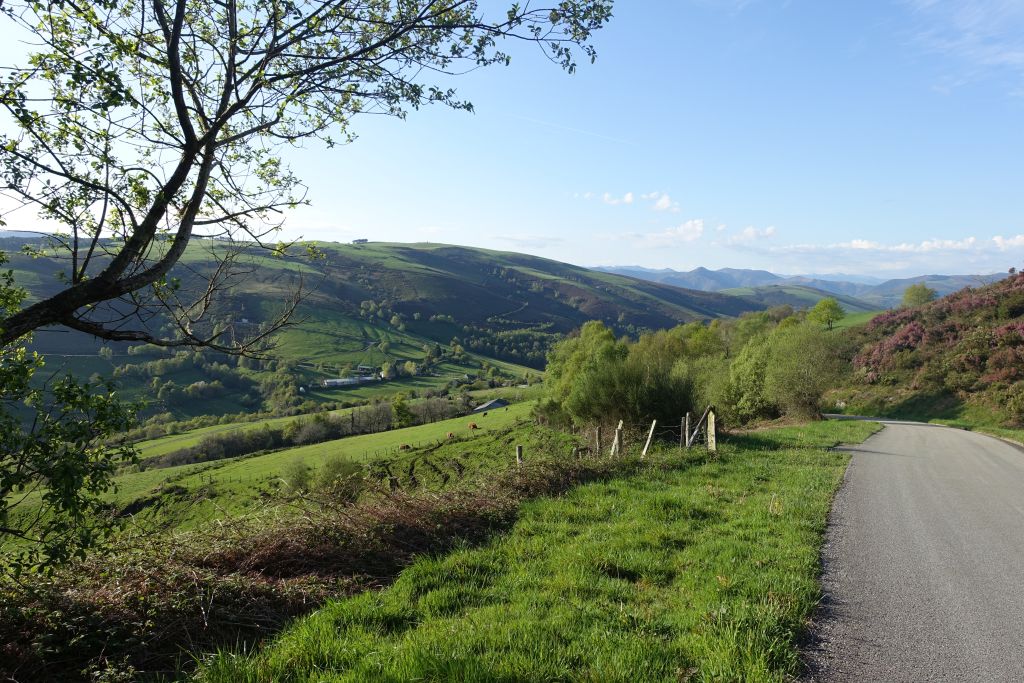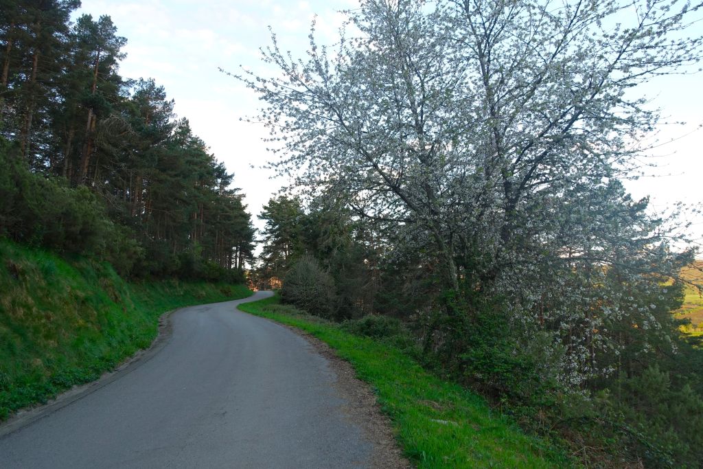 Det bär förstås uppåt. Som alltid varje morgon, men i dag vandrar vi längs en asfalterad väg vilket gör det lättare.