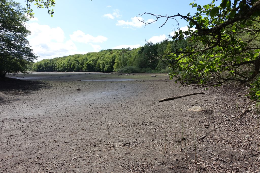 Vi fortsätter sen vidare mot det som fram till alldeles nyligen var Hammarmölledamm, men som nu bara består av en torrlagd sjöbotten.