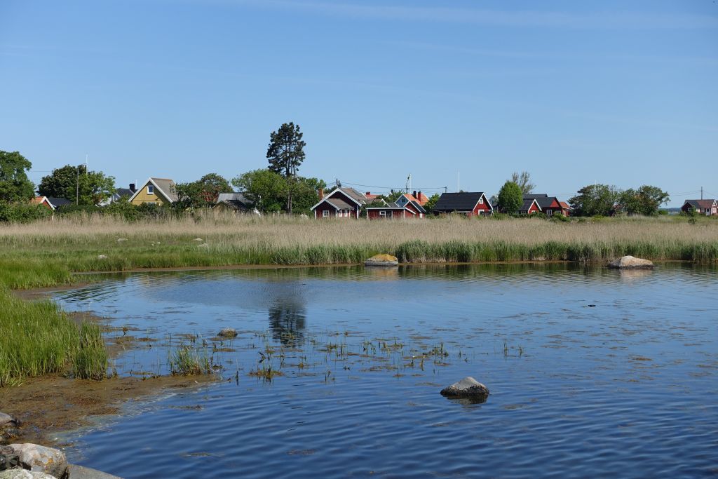 Ön har varit bebyggd ända sedan medeltiden, men i dag finns det bara en bofast bonde kvar på ön. Men med tanke på att vi passerar flera hus gissar vi att det på sommaren fylls på med flera sommargäster.