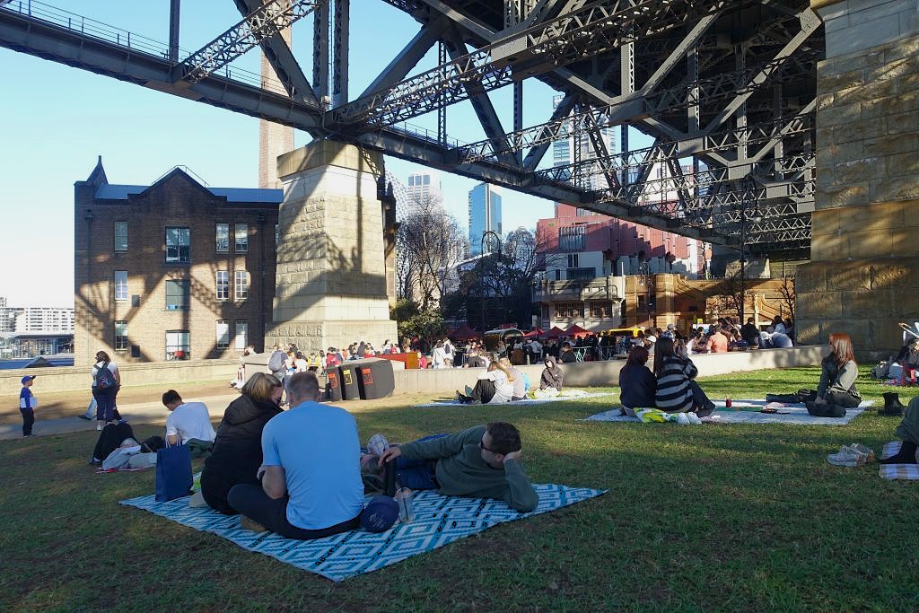 Det tar ett tag innan vi hittar marknaden under Sydney Harbour Bridge. Marknaden som håller öppet varje helg säljer både lokalt hantverk och mat från hela världen.