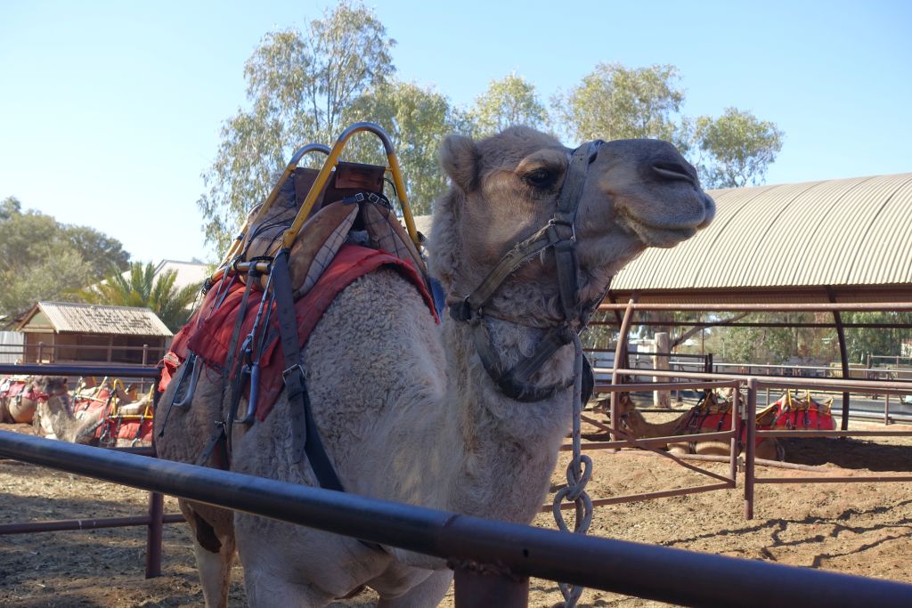 Vi hinner även med ett besök på Uluru Camel Farm för att titta på kameler. Det blir dock bara ett snabbt besök då farmen stänger redan klockan 15.