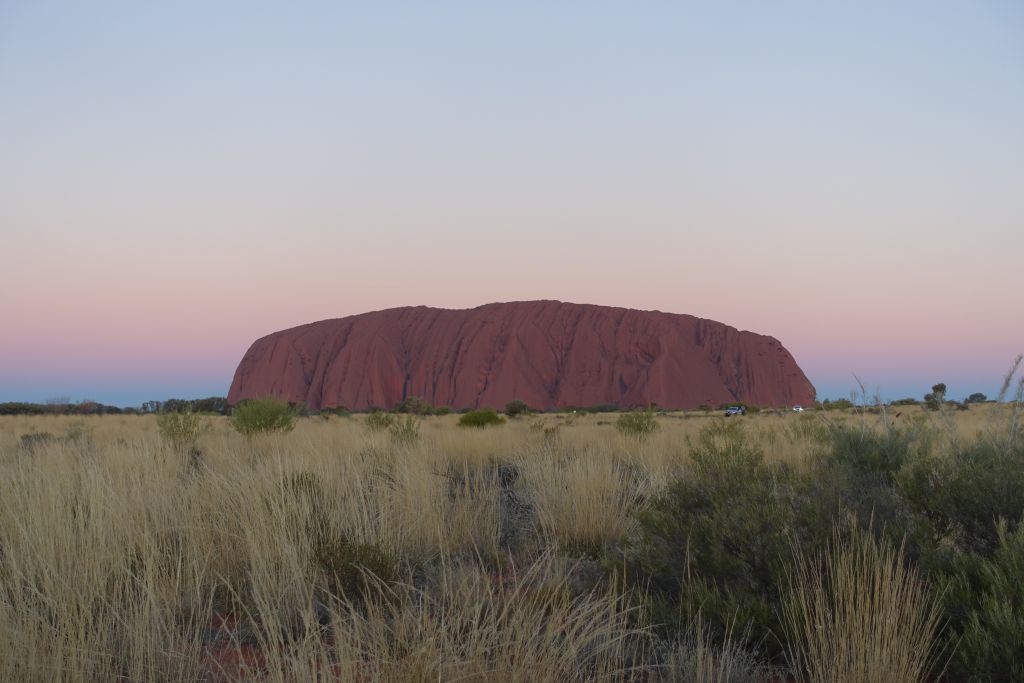 För det är den 348 meter höga Uluru som egentligen är målet med resan hit. Australiens mest kända landmärke. En 500 miljoner år gammal sandstensmonolit mitt ute i öknen.