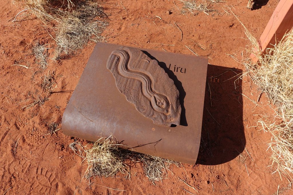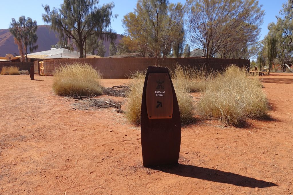 Vi hinner titta på konst, lära oss mer om både aboriginerna och de vitas kolonalisering av Australien innan det är dags att gå till parkeringsplatsen där hop on/hop off bussen hämtar oss för vidare färd tillbaka till Ayers Rock Resort.