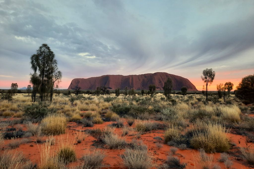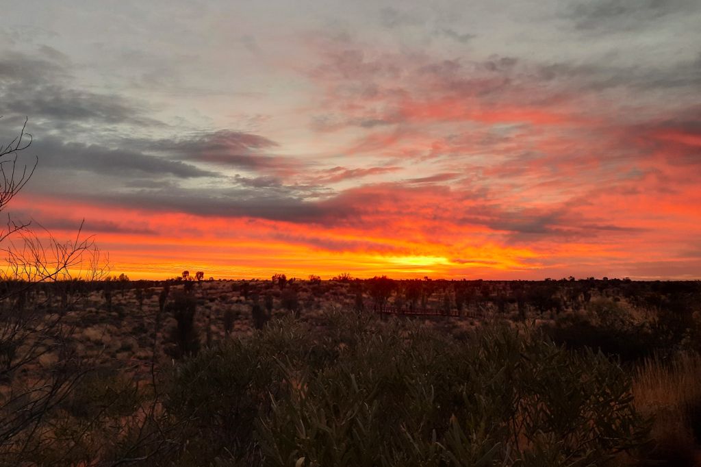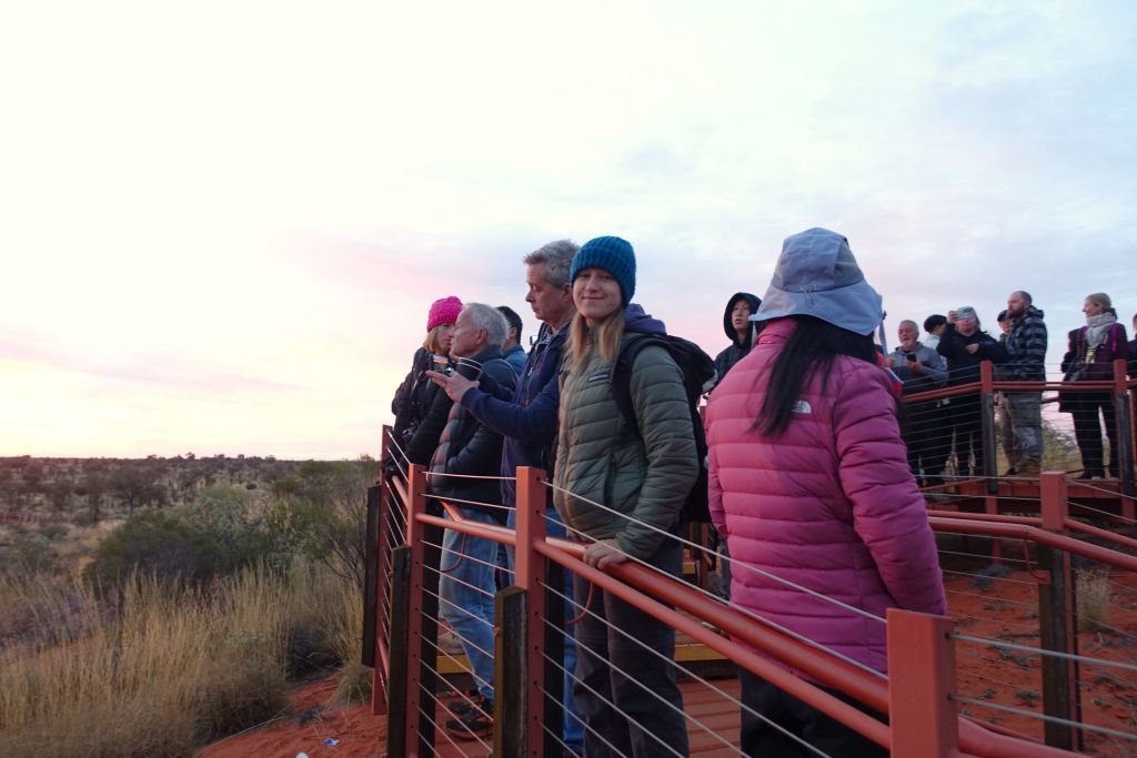 Vi har valt dagens tidigaste tur med hop on/hop off bussen för att få ännu en möjlighet att bevittna en fantastisk soluppgång, denna gång framför Uluru. Det är därför tidig uppstigning även denna morgon.