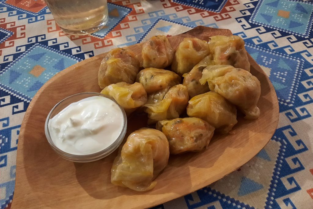 Vi äter sen fantastiskt god moldavisk mat och dricker hemmagjord kompott.