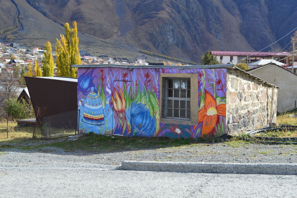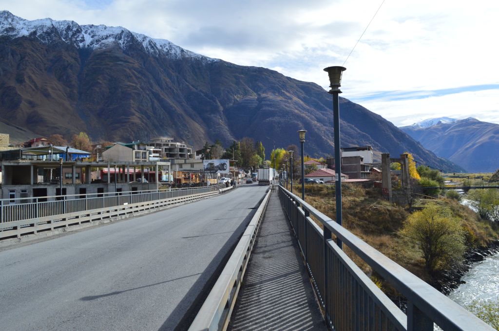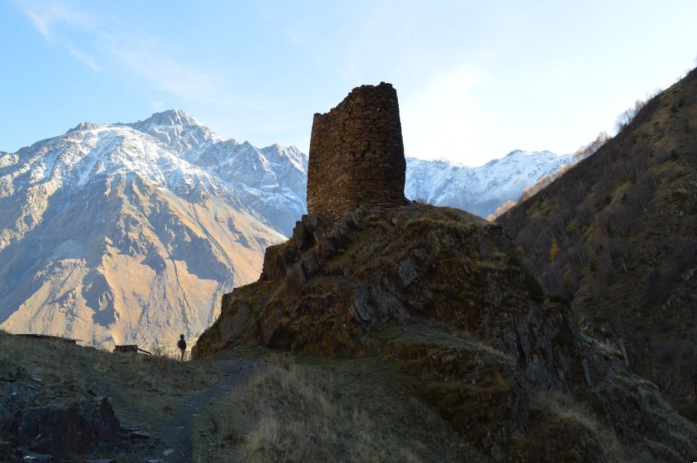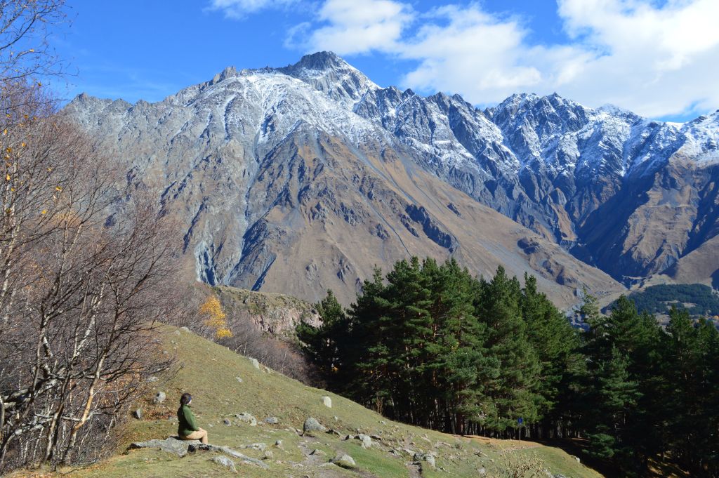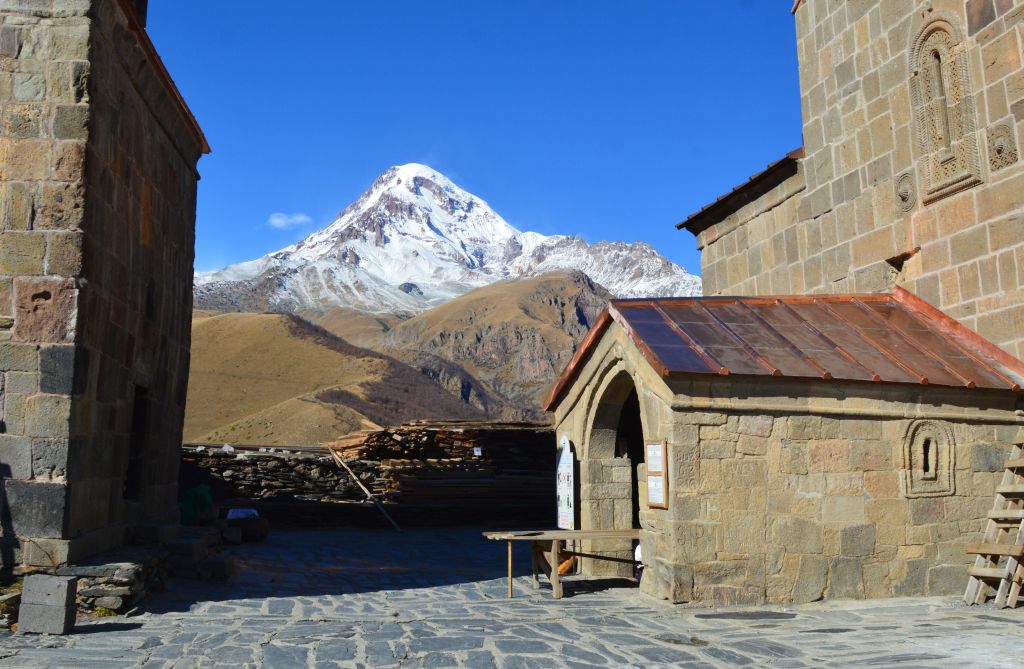 Planen från början är att vandra till Gergeti Glacier, men det visar sig att vi kommer för sent på året för att ta oss an denna krävande vandring. Snön har redan börjat att falla i bergen och det blir mörkt redan vid 18-tiden.